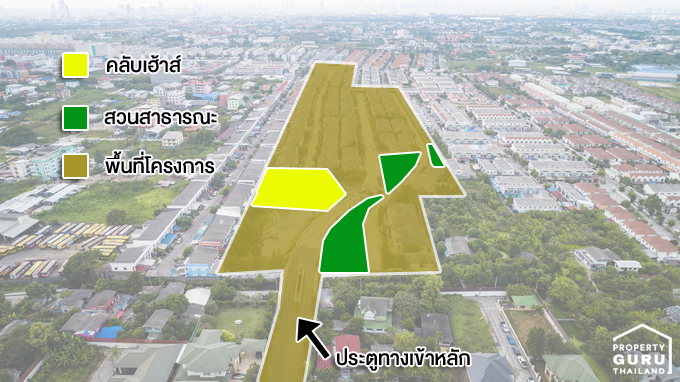 ทางเข้าโครงการ แบบบ้านภายในโครงการ คลับเฮ้าส์ และสวนสาธารณะ