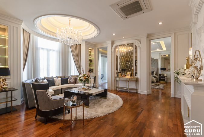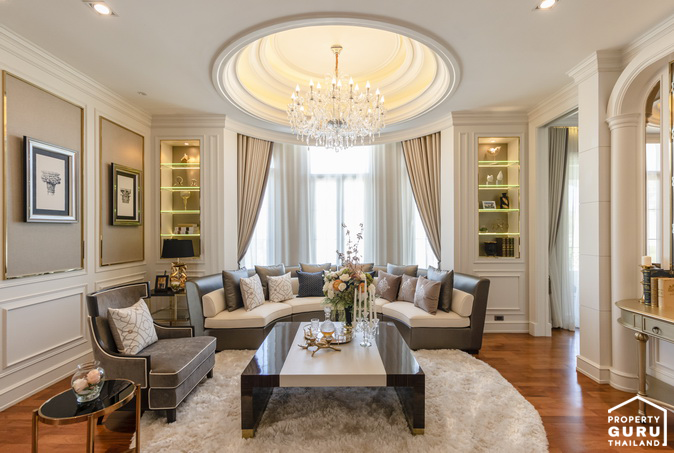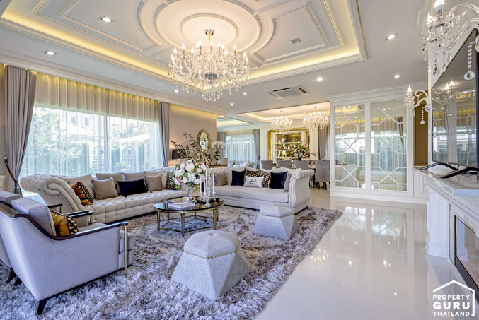 1. Palais du Prince (ปาลา เดอ แปงซ์) - บ้านเดี่ยว 2 ชั้น พื้นที่ใช้สอยรวม 602 ตร.ม. ขนาด 5 ห้องนอน 6 ห้องน้ำ 2 ห้องรับแขก ห้องรับประทานอาหาร ห้องอเนกประสงค์ ห้องเก็บรองเท้า 1 ห้องครัว ห้องพักผ่อนชั้นบน Maid Plaza 1 ห้องแม่บ้าน พร้อมพื้นที่ส่วน service ที่จอดรถ 4 คัน