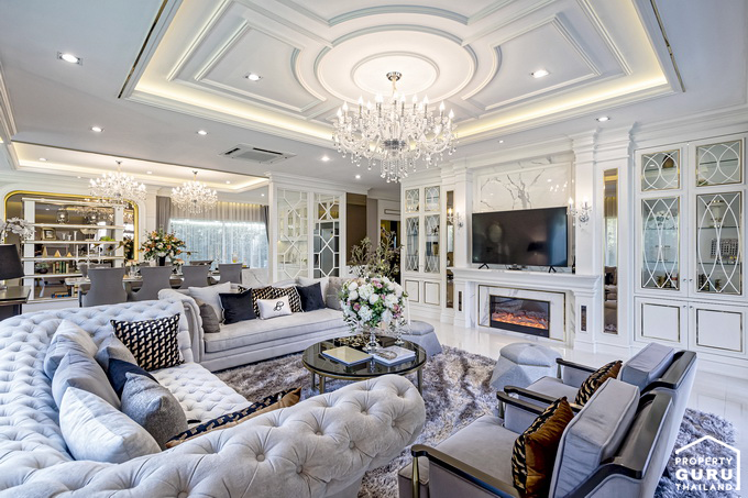 แบบบ้านภายในโครงการมีทั้งหมด 4 แบบ คือแบบบ้าน Palais du Prince, Versailles, Ambroise, Chambord สำหรับแบบบ้านที่ทางทีมงาน Checkraka.com ได้มีโอกาสเข้าเยี่ยมชมและเก็บภาพมาฝากกันในครั้งนี้ คือแบบบ้านที่มีชื่อว่า Palais du Prince ซึ่งเป็นบ้านที่มีขนาดใหญ่ที่สุดในโครงการ และอีกแบบขนาดรองลงมา คือ แบบบ้านที่มีชื่อว่า Versailles ไปชมบ้านตัวอย่างพร้อมตกแต่งทั้งสองหลังกันเลยค่ะ