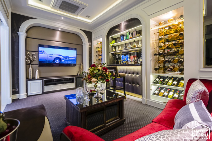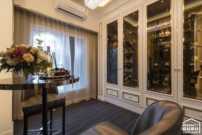 เริ่มจากห้องอเนกประสงค์ด้านล่างนี้ถูกตกแต่งให้มีตู้เก็บไวน์