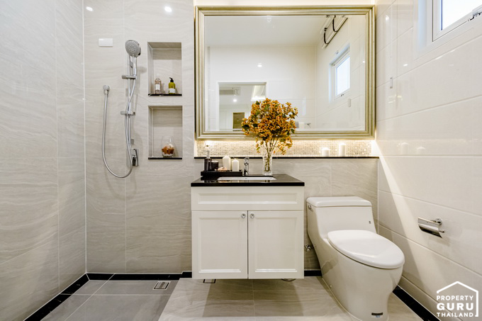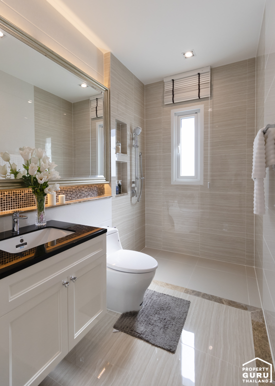 ห้องน้ำของบ้านหลังนี้ก็คล้ายกับหลังที่ผ่านมา คือมีขนาดใหญ่ ฟังก์ชันครบ