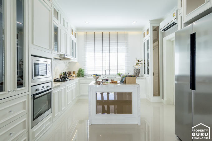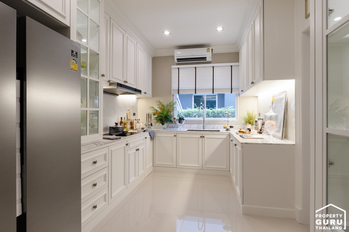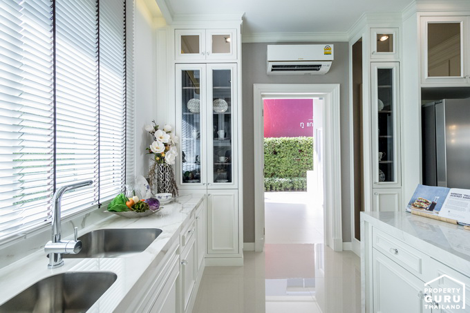 ห้องครัว ที่นี่เป็นครัวแยก ทางโครงการมีประตูปิดมาให้ มีหน้าต่างบานเลื่อน 1 บาน ไว้เปิดระบายอากาศ