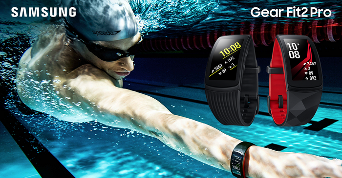 Samsung Gear Fit2 Pro สายรัดข้อมือวัดการออกกำลังกายพร้อม GPS ในตัว อัดแน่นด้วยฟีเจอร์อัพเกรดมากมาย สามารถกันน้ำอย่างมีประสิทธิภาพในระดับแถวหน้า กันน้ำได้ที่ระดับ 5 ATM หรือที่ความลึก 50 เมตร สามารถสวมใส่ว่ายน้ำได้สบายๆ พร้อมจับมือแบรนด์ระดับโลก Speedo ออกแอปพลิเคชั่น "Speedo On" เอาใจผู้ชื่นชอบการว่ายน้ำ สามารถดูค่าสถิติต่างๆ จากการว่ายน้ำได้อย่างง่ายดาย ไม่ว่าจะเป็นการนับรอบ เวลาต่อรอบ ท่าว่ายน้ำ และข้อมูลอื่นๆ พร้อมฟีเจอร์ตรวจวัดอัตราการเต้นของหัวใจที่แม่นยำสามารถตรวจดูอัตราการเต้นของหัวใจในทุกกิจกรรม ไม่ว่าในขณะที่งีบหลับ หรือออกกำลังกายอย่างหนัก