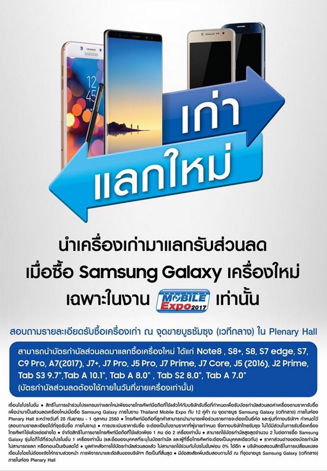 โปรโมชั่นสมาร์ทโฟน Samsung ในงาน Thailand Mobile Expo 2017 วันที่ 28 ก.ย. - 1 ต.ค. 60