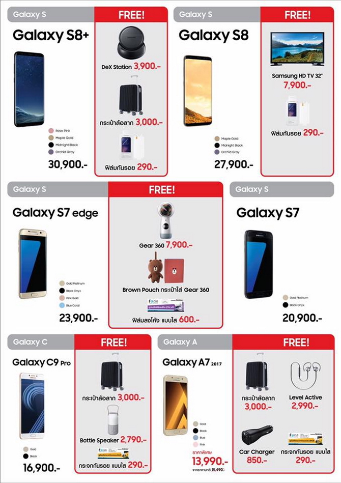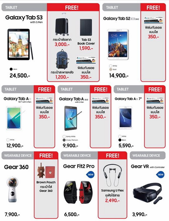 โปรโมชั่นสุดอลังการ! รับของแถมพิเศษเฉพาะในงานเมื่อซื้อสมาร์ทโฟน แท็บเล็ตในตระกูล Galaxy ที่ร่วมรายการ Gear 360 และ Gear Fit 2 Pro พร้อมร่วมลุ้นสุดตัวไปกับ นาทีทอง! เมื่อซื้อ Samsung Galaxy J7+ หรือ Samsung Galaxy J7 Pro ลุ้นรับฟรี! ทีวี Samsung ขนาด 32 นิ้ว มูลค่า 7,900 บาท (แจกจริง 4 วัน รวม 80 เครื่อง) ภายในงานเท่านั้น! และพิเศษลูกค้าสามารถนำสมาร์ทโฟนเครื่องเก่า รุ่นใด ยี่ห้อใดก็ได้ โดยเป็นรุ่นและยี่ห้อที่ทางบริษัทรับซื้อกำหนดไว้ มาแลกรับส่วนลดเมื่อซื้อ ซัมซุง กาแลคซี่ เครื่องใหม่เฉพาะในงาน ณ จุดขายบูธซัมซุง