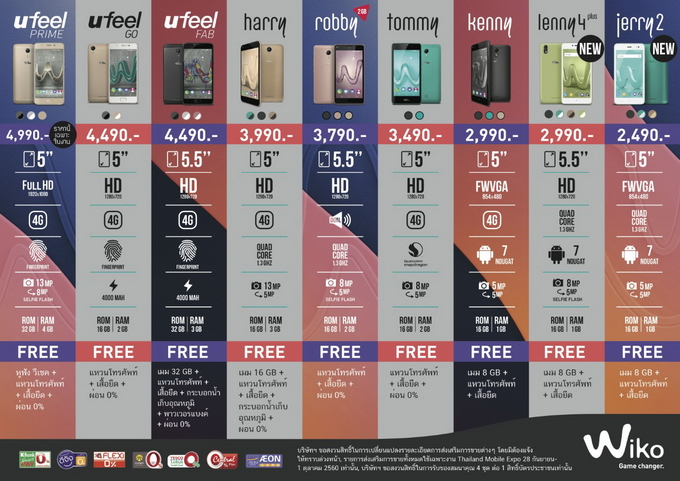 - Wiko View ราคา 4,990 บาท ภายในงานนี้ รับฟรี Micro SD card 32 GB + เสื้อยึด+แหวนโทรศัพท์ + Power bank 4000 mAh