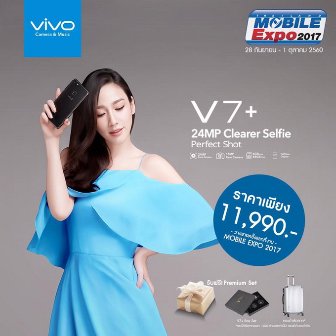 Vivo V7+ สมาร์ทโฟนหน้าจอไร้ขอบ FullView Display กล้องหน้าความละเอียดสูง 24MP ค่ารูรับแสงสว่าง F2.0 พร้อมไฟแฟลช Moonlight Glow Flash จะวางจำหน่ายอย่างเป็นทางการ เป็นครั้งแรกในงาน
