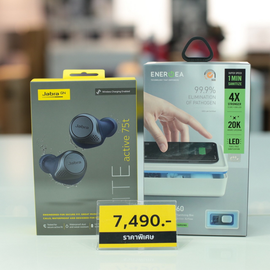 - Jabra True Wireless รุ่น Elite Active 75t WLC แถม Energea UV Box with Wireless Charger รุ่น Stera360 จำหน่ายในราคา 7,490 บาท