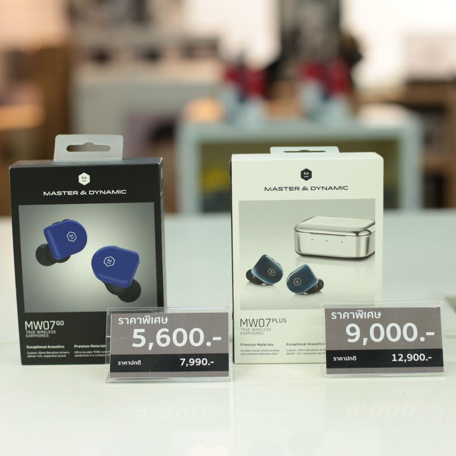 - Master & Dynamic หูฟังไร้สาย รุ่น MW07 GO True Wireless Earphone จำหน่ายในราคาเพียง 5,600 บาท (จากราคาปกติ 7,990 บาท) และ Master & Dynamic หูฟังไร้สาย รุ่น MW07 Plus True Wireless Earphone จำหน่ายในราคาเพียง 9,000 บาท (จากราคาปกติ 12,900 บาท)