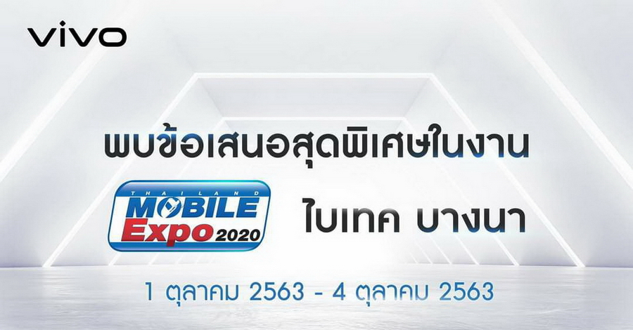 Vivo จัดโปรเด็ดในงาน Thailand Mobile Expo 2020 ระหว่างวันที่ 1 - 4 ตุลาคม 2563 ที่ไบเทค บางนา เดินทางสะดวกด้วยรถไฟฟ้า BTS สถานีบางนา ของสมนาคุณจัดเต็ม! ภายในงานจะได้พบกับสมาร์ทโฟนรุ่นเด่นมากมาย อาธิ