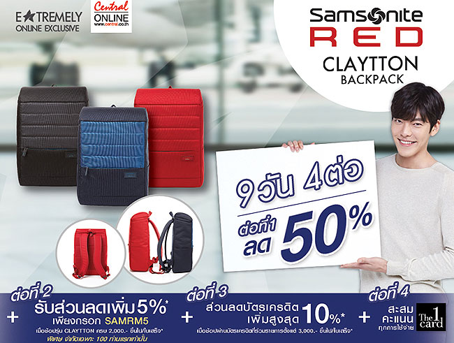 เลือกหากระเป๋าเป้ขนาดกำลังดีที่สามารถพกพาติดตัวขึ้นเครื่องบิน เพื่อเก็บของใช้จำเป็นและของที่ต้องพกติดตัวตลอดเวลาอย่าง พาสปอร์ต กระเป๋าเงิน บัตรเครดิต นามบัตรโรงแรม ตั๋วรถไฟ ตั๋วเข้าสถานที่ต่างๆ หรือจะเป็นไอเท็มเจ๋งๆ อย่าง Tablet, มือถือ, Pocket WiFi, PowerBank, แว่นตากันแดด หรือครีมกันแดด(ที่ต้องทาซ๊ำในระหว่างวัน) สารพัดสิ่งของจำเป็นชิ้นเล็กชิ้นน้อยไม่อยากลืมหรือทำหล่นหายเพื่อนๆ ก็ควรรวบรวมใส่ไว้ในกระเป๋าเป้ หรือกระเป๋าสะพายติดตัว เพื่อให้สะดวกและง่ายต่อการพกพา ลองเลือกหากระเป๋าเก๋ๆ ที่มีครบทั้งดีไซน์และฟังก์ชั่น ยิ่งมีคุณสมบัติเทพๆ อย่างกันน้ำกันฝนได้ก็ยิ่งดี เดี๋ยวนี้กระเป๋าเป้ออกแบบให้โดนใจวัยรุ่นเยอะแยะมากมาย แต่ราคาก็ต้องโดนใจด้วยเช่นกัน เราแอบเห็นเซ็นทรัลออนไลน์มีโปรโมชั่นแรงส์ แบรนด์ก็ดัง ราคาก็โดน จากSamsonite ถ้าเพื่อนๆสนใจ กดเข้าไปชมได้เลย