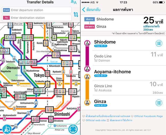 Tokyosubway แอปฯ เช็คเส้นทางรถไฟใต้ดินในญี่ปุ่น ใช้งานง่าย แค่เลือกสถานีต้นทาง-ปลายทาง