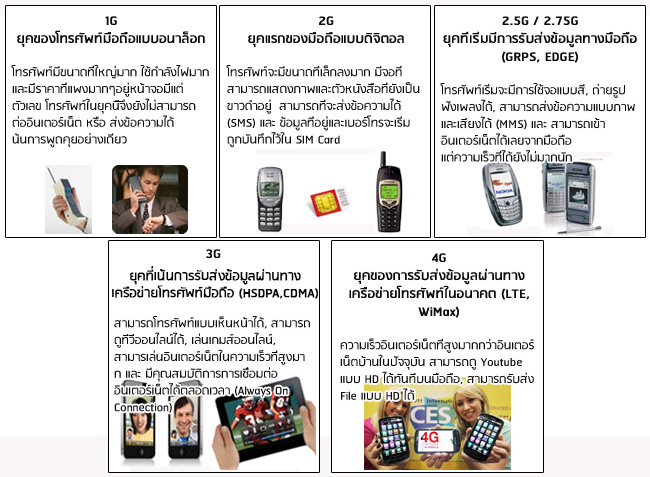 เป็นที่น่าสังเกตว่า การพัฒนาเข้าสู่แต่ละช่วงนั้น จะถูกพัฒนาในทุกๆ 10 ปี อย่าง 1G เกิดขึ้นครั้งแรกเมื่อปี พ.ศ. 2522 ที่โตเกียว ประเทศญี่ปุ่น ผ่านเข้ามาปี พ.ศ. 2533 ก็เริ่มเข้าสู่ยุคของ 2G ใช้ครั้งแรกที่ประเทศฟินแลนด์ ผ่านมาในปี พ.ศ. 2544 ก็เป็นยุคของ 3G ซึ่งถือว่าเป็นยุคแรกที่เริ่มมีการแบ่งเป็นช่วงยุคของโทรศัพท์มือถือ โดยเทคโนโลยีของยุคนี้ถูกใช้ในครั้งแรกที่โตเกียว ประเทศญี่ปุ่น จนกระทั่งเมื่อปี พ.ศ. 2552 ที่ผ่านมาไม่นานนี้ก็เข้าสู่ช่วง 4G ส่วนคำว่า 5G นั้น เกิดขึ้นครั้งแรกที่ประเทศเกาหลี และขณะนี้กำลังมีการวิจัยกันอยู่ คาดว่าอีกไม่นานก็คงจะเข้าสู่ยุค 5G กันแล้ว ก็ต้องมารอลุ้นกันว่า ประเทศไทยเราจะปรับให้ทันสมัยเท่าสากลได้ในเวลาที่ใกล้เคียงกันได้หรือไม่ อย่างไรก็ตาม ในตอนนี้ เราไปดูกันดีกว่า คำว่า 1G 2G 3G 4G นั้น แท้จริงแล้วมันคืออะไรกันแน่ แล้วในแต่ละยุคสมัยนั้นมีอะไรบ้าง ไปติดตามกันเลยค่ะ