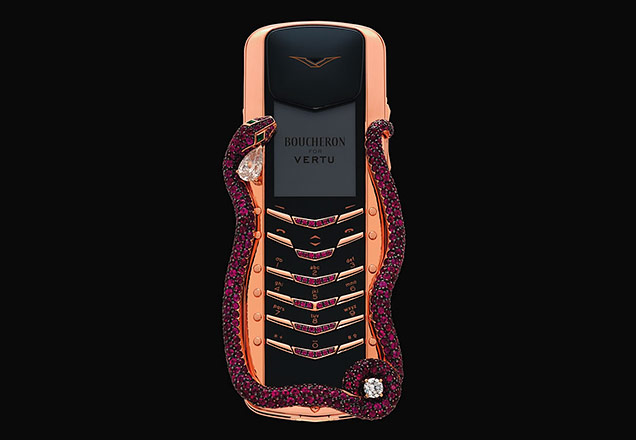 หากเอ่ยถึงแบรนด์ Vertu แล้ว หลายคนคงนึกถึงโทรศัพท์มือถือที่หรูหรา และมีราคาอันสูงลิบ ในปี 2006 Vertu ผลิตโทรศัพท์มือถือรุ่นนี้ออกวางจำหน่ายเพียง 8 เครื่องในราคา 310,000 ดอลลาร์สหรัฐ (ประมาณ 10,230,000 บาท) และดีไซน์โดยนักออกแบบเครื่องประดับชาวฝรั่งเศสนามว่า Boucheron ตัวเครื่องมีจุดเด่นเป็นงูเห่าที่เลื้อยรอบเครื่อง โอบอุ้มเพชร 2 เม็ด รวมถึงมรกต 2 เม็ด และทับทิมอีก 439 ชิ้น