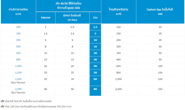 ส่วนค่าย DTAC ก็มี Super 4G ไว้รองรับการใช้งานของลูกค้าเช่นกัน โดยมีแพ็คเกจที่ชูโรงอย่าง Super NON-STOP ที่มีให้ราคารายเดือนให้เลือกตั้งแต่ 299 บาท จนถึง 1,999 บาท ซึ่งเป็นราคาที่ทางดีแทคบอกว่าคุ้มที่สุดสำหรับคนงบประมาณไม่มาก ก็คือ 499 บาท โดยสามารถเล่นเน็ต 3G/4G รวมกันได้ถึง 10GB ใช้เน็ตไม่หมด ทบไปเดือนหน้าได้ แถมยังได้ดูหนัง HD บนแอป primetime สูงสุด 20 เรื่องต่อเดือน
