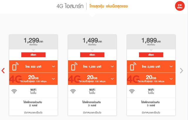 1. 4G ไอสมาร์ท จะเน้นในเรื่องการโทรอย่างคุ้มค่า และเล่นเน็ตสุดแรง โดยมีค่าบริการให้เลือกตั้งแต่ 299 บาท จนถึง 1,899 บาท ใช้เน็ตได้สูงสุด 20GB