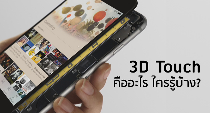 ถ้าพูดถึง 3D Touch หลายๆ คนคงจะเคยได้ยินกันมาบ้างแล้วใช่มั้ยคะ และพอจะทราบกันบ้างหรือเปล่าว่าเจ้า 3D Touch เนี่ยมันคืออะไร ใช้งานยังไง? ซึ่งในปัจจุบันนี้ได้มีการนำเทคโนโลยี 3D Touch มาใช้งานแล้วใน iPhone 6s แต่มันดียังไง แล้วการใช้งานต้องทำอะไรบ้าง เราไปดูกันเลยดีกว่า....