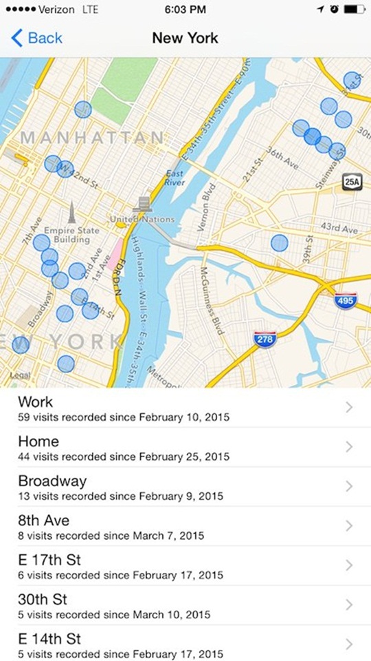 4. iPhone สามารถบอกได้ว่าคุณเดินทางไปไหนมาบ้าง