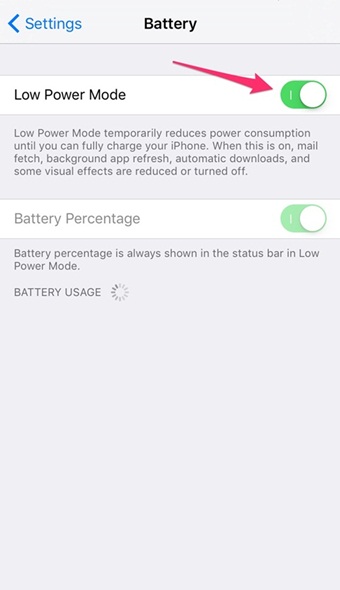 เคยไหมที่ทำทุกวิถีทางที่จะประหยัดแบตเตอรรี่ในมือถือแล้ว แต่ก็แบตเตอรี่เจ้ากรรมก็ยังหมดเร็ว ทั้งๆ ที่ไม่ค่อยได้ใช้อะไรถ่ายรูปเซลฟี่ก็ไม่บ่อย เราขอแนะนำให้เข้าไปที่โหมดประหยัดแบตเตอรรี่ (ฟีเจอร์สำหรับ iOS 9) ที่จะหยุดการทำงานของระบบอัพเดทอัตโนมัติ และระบบยิบย่อยต่างๆ ที่ต้องใช้พลังงานแบตฯ เพื่อเซฟแบตไว้ใช้ได้นานที่สุด เมื่อตั้งค่าโหมดนี้แล้วแบตเตอรรี่จะเปลี่ยนจากสีเขียวเป็นสีเหลือง โดยเข้าไปที่ Settings > Battery > Low Power Mode