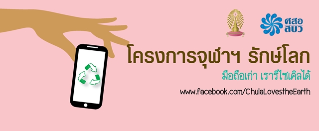 นอกจากนั้นยังมีโครงการดีๆ ที่เราไปเจอมาอีกหนึ่งโครงการนั่นก็คือ "โครงการจุฬาฯ รักษ์โลก" ดำเนินการโดยศูนย์ความเป็นเลิศด้านการจัดการสารและของเสียอันตราย (ศสอ.) จุฬาลงกรณ์มหาวิทยาลัย ตั้งแต่ปี 2553 จนถึงปัจจุบัน โดยมีวัตถุประสงค์เพื่อสร้างความรู้และความเข้าใจในเรื่องการจัดการขยะอิเล็กทรอนิกส์อย่างถูกวิธี รวมทั้งเป็นหน่วยงานกลางในการเก็บและรวบรวมขยะอิเล็กทรอนิกส์ โดยเฉพาะโทรศัพท์มือถือ แบตเตอรี่และอุปกรณ์เสริมที่ไม่ใช้แล้ว (สายชาร์จ หูฟัง) และนำไปกำจัดอย่างถูกวิธี เพื่อเป็นการป้องกันการเกิดปัญหาจากการจัดการขยะที่ไม่ถูกต้อง เพราะสารอันตรายในโทรศัพท์มือถือและอุปกรณ์เสริม อาจรั่วไหลสู่สิ่งแวดล้อมและยังทำให้เกิดอันตรายต่อสุขภาพได้ และอุปกรณ์เหล่านี้ยังสามารถนำไปรีไซเคิลเพื่อนำทรัพยากรกลับมาใช้ประโยชน์ได้ใหม่