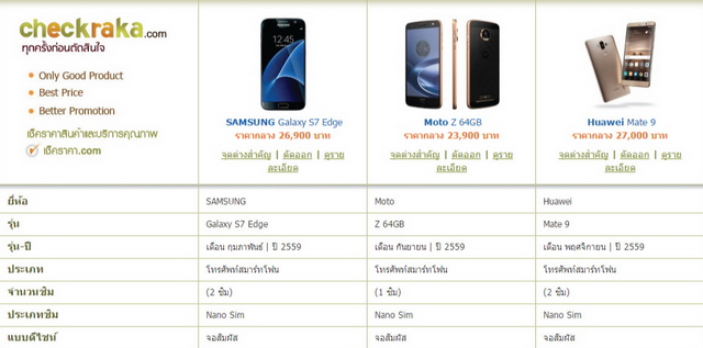เพื่อนๆ สามารถไปดูข้อมูลเปรียบเทียบสเปคและราคาของ Huawei Mate 9, Samsung Galaxy S7 edge และ Moto Z เพิ่มเติมกันได้ตามลิงค์นี้เลยครับ