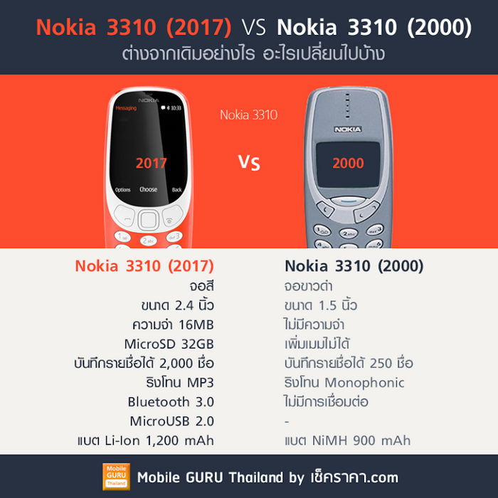 Nokia 3310 (2017) VS Nokia 3310 (2000) ต่างจากเดิมอย่างไร อะไรเปลี่ยนไปบ้าง