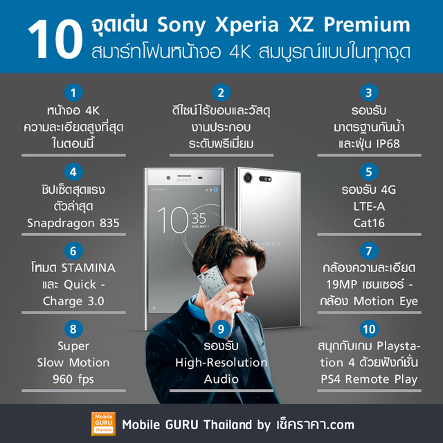 10 จุดเด่น Sony Xperia XZ Premium สมาร์ทโฟนหน้าจอ 4K สมบูรณ์แบบในทุกจุด