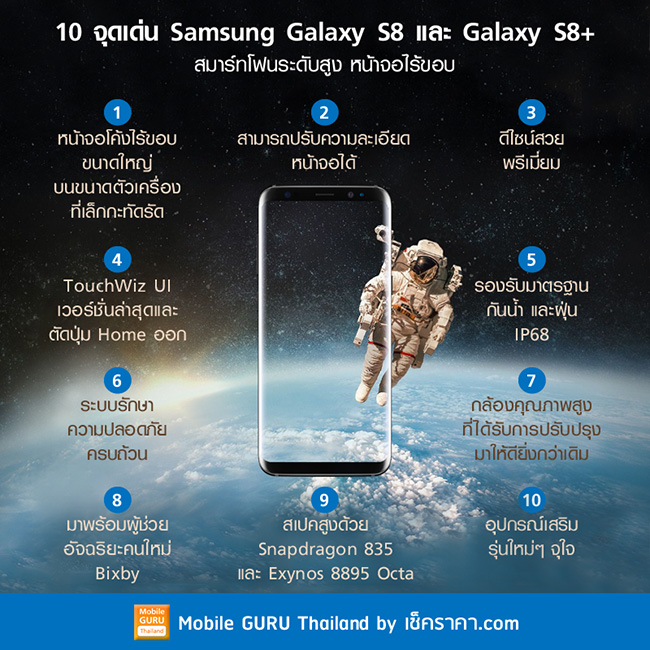 10 จุดเด่น Samsung Galaxy S8 และ Galaxy S8+ สมาร์ทโฟนระดับสูง หน้าจอไร้ขอบ Samsung Galaxy S8 และ