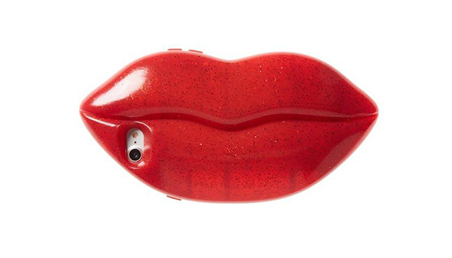 เคสรูปริมฝีปากสีแดงขนาดใหญ่ วัสดุเป็นซิลิโคนใสๆภายในมีประกายสีทองวิบวับ ราคา $90 หรือ 3,124 บาท