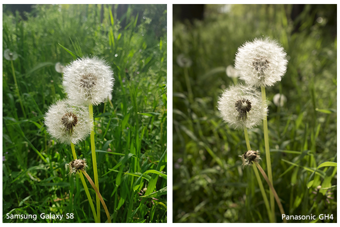 ภาพนี้ Samsung Galaxy S8 ถ่ายแบบปกตินะครับ ไม่ได้ใช้ฟังก์ชั่น Selective Focus จะเห็นได้ว่าภาพดูคมมาก รายละเอียดตรงบริเวณดอก Dandelions ดูคมกริบ และโทนสีของภาพมาแนวสดใส ส่วนภาพที่ใช้ กล้อง Panasonic GH4 ตามคาดเลยครับ ละลายหลังได้สวยงาม รวมทั้งโทนสีที่สมจริงกว่า