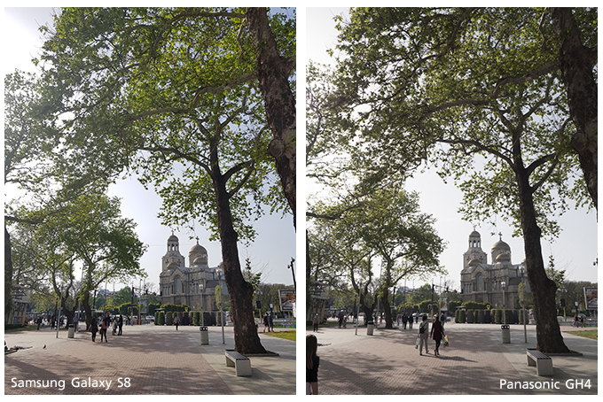 เป็นการถ่ายภาพย้อนแสง ซึ่งภาพนี้ Panasonic GH4 เก็บรายละเอียดได้ดีกว่า แต่โทนสีอุ่นๆ ของ Samsung Galaxy S8 ก็ทำให้ภาพดูสวยทีเดียว