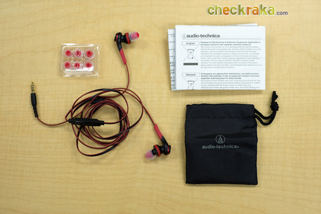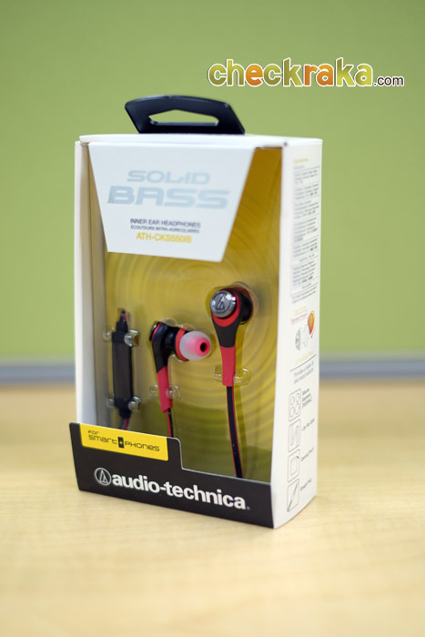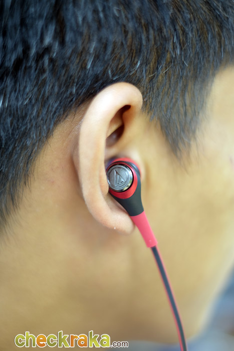 Audio-Technica ATH-CKS550iS เป็นหูฟัง in-ear แบบมีสายที่ถูกออกแบบมาได้สวยงาม สะดุดตา น้ำหนักอยู่ที่ 7.5 กรัม โดยมี 5 สีให้เลือกตามใจชอบ คือ black (ATH-CKS550iSBK), blue (ATH-CKS550iSBL), white (ATH-CKS550iSWH), black/gold (ATH-CKS550iSBGD), และ red (ATH-CKS550iSRD) ซึ่งตัวที่เราได้มาสัมผัสก็คือ สีแดง นั่นเอง