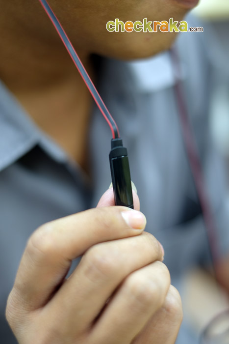 สายหูฟังมีความยาว 1.2 เมตร ซึ่งนับว่ายาวพอสมควร ช่วยให้เรานำโทรศัพท์มือถือไว้ในกางเกง