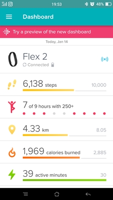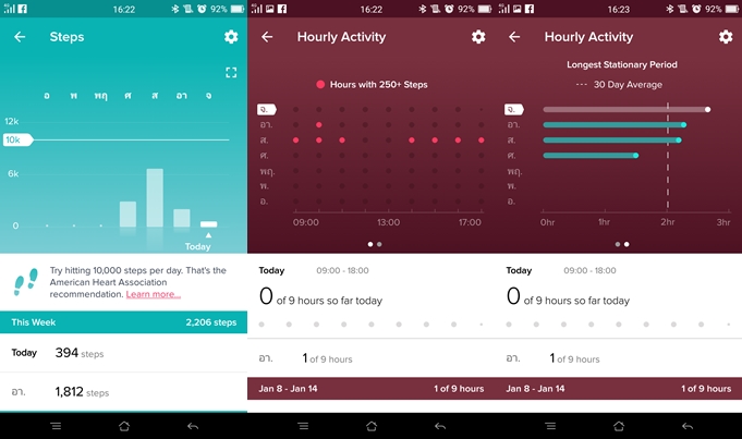ในหน้ารวม Dashboard จะรวมเอาการตรวจจับกิจกรรมต่างๆของเราเอาใว้อย่างละเอียด โดยแยกเป็นหัวข้อต่างๆ ทั้งตรวจนับก้าว, กิจกรรมที่เราออกกำลังกาย, ระยะทาง, การเผาผลาญแคลอรี่, ช่วงเวลาการเผาผลาญ, ตรวจจับการนอน, อาหาร และการดื่มน้ำ พูดง่ายๆเหมือนมีเทรนเนอร์ส่วนตัว คอยดูแลเลยครับ