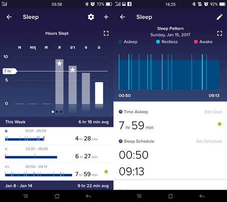 Fitbit Flex 2 กับความสามารถตรวจจับการนอน ที่ไม่ต้องไปตั้งค่าอะไรเลย แค่ใส่แล้วนอนเท่านั้น มันจะแสดงผลการนอนหลับของเราอย่างละเอียด ว่ามีตอนที่เราหลับไม่สนิท มีการขยับตัวรุนแรงหรือเปล่า สามารถตรวจจับได้อย่างละเอียดระดับนาทีเลยทีเดียว และจะมีข้อมูลสรุปให้เราอีกด้วยว่าเรานอนหลับลึกนานแค่ไหน และหลับไม่สนิทนานแค่ไหน น่าประทับใจมากครับ