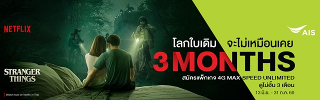 1. มอบความบันเทิงที่เต็มอิ่มยิ่งกว่า กับโปรโมชั่นสุดพิเศษ! สมัครแพ็กเกจเสริม AIS ? Netflix 350 บาท ตั้งแต่วันนี้ - 31 กรกฎาคม 2560 รับสิทธิ์! ดูหนัง และซีรีส์ Netflix ไม่อั้น ฟรี! 3 เดือนแรก (รวมมูลค่า 1,050 บาท) เริ่มชำระเดือนที่ 4 เป็นต้นไป สิทธิพิเศษนี้สำหรับ