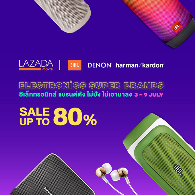 มหาจักรดีเวลอปเมนท์ จำกัด กลับมาอีกครั้งลดหนัก! จัดเต็มที่สุด! ในรอบปีกับ หูฟัง-ลำโพง JBL, Harman/Kardon, Denon ในแคมเปญ "Electronics Super Brands อิเลคทรอนิกส์ แบรนด์ดัง ไม่ปัง ไม่เอามาลง" ลดสูงสุดถึง 80%