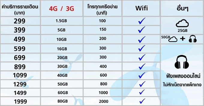 นอกจากนี้ทุกแพ็กเกจ สามารถใช้ LINE Messenger, LINE Calls และ LINE VDO Call ได้ และยังสามารถดู LINE TV ได้แบบไม่อั้น โดยที่ไม่เสียอินเตอร์เน็ตในแพ็กเกจนั้นๆ สามารถใช้ Wifi calling โทรผ่าน wifi ทั่วโลก และ SMS ฟรี ไม่จำกัด และ ผู้ใช้งานสามารถเลือก เปิด-ปิดเน็ตความเร็วคงที่ที่ 256 Kbps ได้ฟรี! ตลอดเวลาตามต้องการโดยไม่ต้องรอให้ใช้เน็ตจากแพ็กเกจหมด เช่น ฟังเพลงผ่าน Joox หรือ เข้าเว็บไซต์ทั่วไป ก็สลับไปใช้เน็ตฟรี (256 Kbps) แต่ถ้าเปิดคลิปหรือโหลดไฟล์ ก็สลับมาใช้เน็ตตามแพ็กเกจ (ความเร็วสูง)