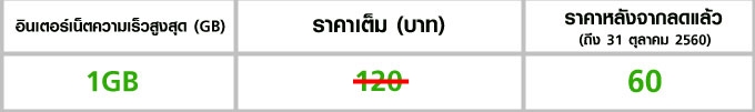 แต่ถ้าหากคิดว่ายังไม่พอใช้งาน สามารถซื้อความเร็วเพิ่มได้ตามราคาด้านบน (ราคาไม่รวม VAT) โดยมีข้อเสนอส่วนลด 50% ของราคาเต็มเมื่อซื้ออินเตอร์เน็ตเสริมภายในรอบบิลนั้นๆ โปรโมชั่นสิ้นสุดวันที่ 31 ตุลาคม 2560