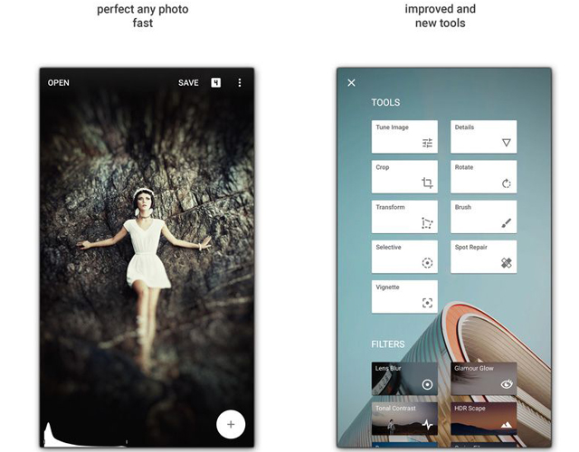ถ้าไม่พูดถึงคงไม่ได้สำหรับแอพแต่งรูประดับโปรอย่าง Snapseed ที่มีครบทุกฟังก์ชัน ไม่ว่าจะเป็นปรับแต่งภาพ (แสง, สี, ความคมชัด, ความอิ่มตัวของสี, ไฮไลท์ และเงา) ถือเป็นการเพิ่มความโดดเด่นให้ภาพดูน่าสนใจยิ่งขึ้น นอกจากนี้ยังสามารถแก้ไขภาพเฉพาะจุดได้ด้วยเทคโนโลยี "Control Point" ช่วยให้คุณสามารถปรับตำแหน่งสูงสุดได้ถึง 8 จุดบนภาพ ส่วนคนไหนที่ชื่นชอบการแต่งรูปที่มีฟิลเตอร์ แอพนี้เขาก็มีมาให้เลือกจนตาลาย เห็นอย่างนี้แล้วคงต้องรีบหยิบโทรศัพท์มาดาวน์โหลดกันด่วนๆ เลยค่ะ