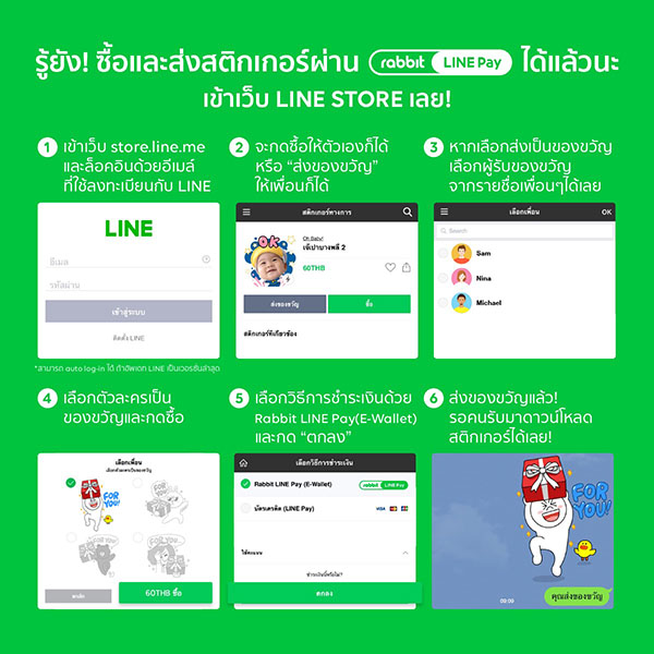 8 ขั้นตอนการซื้อสติกเกอร์และธีมใน LINE STORE ด้วย Rabbit LINE Pay มีดังนี้