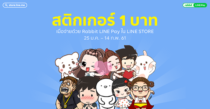 พิเศษ! Line Sticker เพียง 1 บาท เมื่อชำระผ่าน Rabbit LINE Pay ใน LINE STORE วันนี้ - 14 ก.พ.นี้เท่านั้น