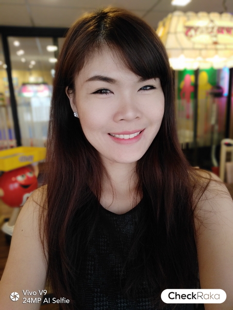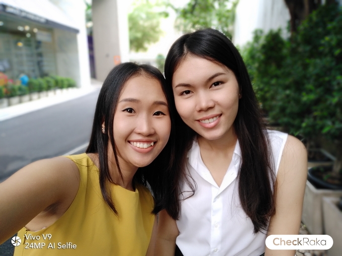 Vivo V9 เป็นสมาร์ทโฟนที่มีกล้องหน้าความละเอียดสูงมากครับ สูงเป็นอันดับต้นๆ ในตอนนี้ โดยมาพร้อมความละเอียด 24MP F2.0 มาพร้อม AI Face Beauty ที่จะช่วยปรับแต่งใบหน้าโดยเลือกอัลกอริทึมที่ทำให้ได้ภาพออกมาดีที่สุด โดยใช้ฐานข้อมูลกว่าล้านรูปทั่วโลก มาช่วยในการประมวลผล จากการทดสอบสามารถ Selfie ได้สวยงามกระจ่างใสอย่างเป็นธรรมชาติ โดยตัวฟีเจอร์จะสามารถปรับได้ถึง 6 ระดับ หรือเราจะเลือกให้ระบบ AI คำนวนและประมวลผลให้เราอย่างเหมาะสมก็ได้ รายละเอียดภาพดีมากครับ ไม่เนียนจนเกินไป ผิวนางแบบยังดูเป็นผิวคนไม่ดูเป็นหุ่น สวยงามมากๆ นอกจากนี้ยังสามารถใช้งานร่วมกับฟีเจอร์ AI Portrait ช่วยให้เราถ่ายภาพ Selfie แบบหน้าชัดหลังละลายได้อย่างง่ายดาย สามารถเลือกใช้งานทั้ง 2 ความสามารถนี้พร้อมๆ กันได้เลยครับ