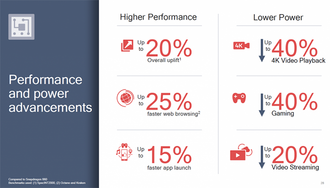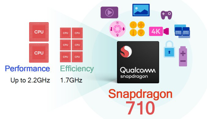 CPU Snapdragon 710 นั้นใช้สถาปัตยกรรมในการออกแบบตัวชิปด้วยเทคโนโลยีการผลิต 10 nm ใช้แพลตฟอร์ม Kyro 360 ซึ่งเป็นการทำงานแบบ Dual core + Hexa core Processor รองรับการประมวลผลร่วมกับ NPU AI Processor ซึ่งภาพรวมประสิทธิภาพการทำงานให้ผลดีกว่า Snapdragon 660 อยู่ราวๆ 30% และประหยัดพลังงานมากกว่า ในขณะที่ด้านการเชื่อมต่อใช้โมเด็ม X15 LTE ทำให้รองรับเทคโนโลยี 4x4 MIMO และรองรับ Download speed ได้สูงสุดที่ 800 Mbps ส่วน 660 นั้นไม่รองรับ MiMO และรองรับ Download speed ได้สูงสุดที่ 600 mbps เท่านั้น