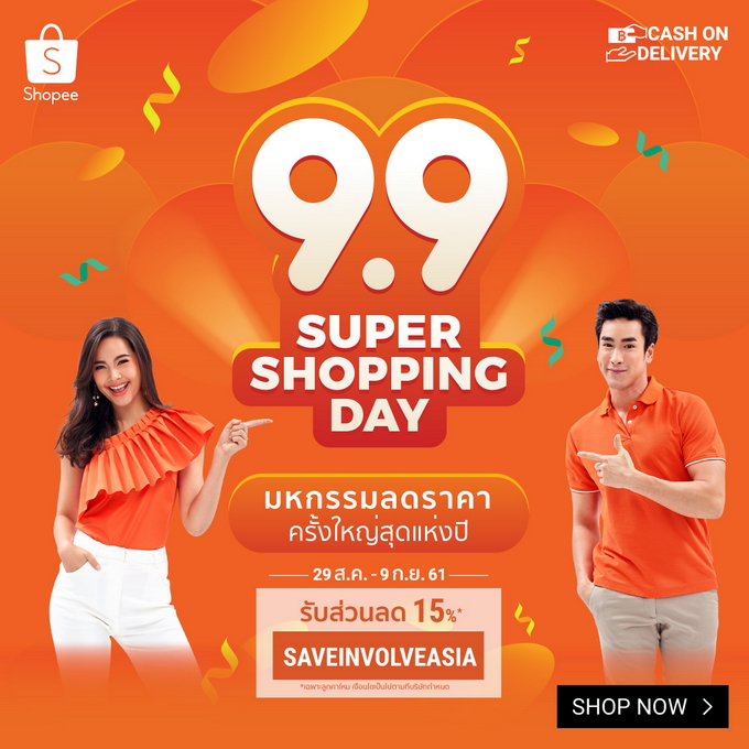 SHOPEE 9.9 SUPER SHOPPING DAY เริ่มคิกออฟตั้งแต่วันที่ 29 ส.ค. ยาวไปจนถึงวันที่ 9 ก.ย. ทั้ง 12 วันพิเศษเรียกว่า SUPER THEMED DAY ของ SHOPEE 9.9 SUPER SHOPPING DAY ได้เริ่มจัดสินค้าลดราคาจากหมวดสินค้าต่างๆ หมุนเวียนสลับกันทุกวัน