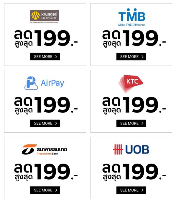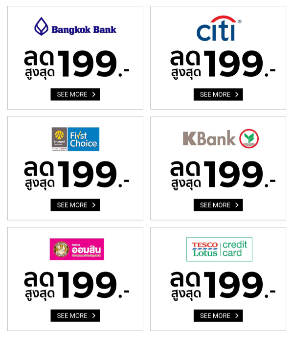 นอกจากนี้ยังมาพร้อมโปรโมชั่นส่วนลดเพิ่มเติม เมื่อชำระผ่านบัตรเครดิตที่ร่วมรายการ โดยจะมีรายละเอียดดังต่อไปนี้