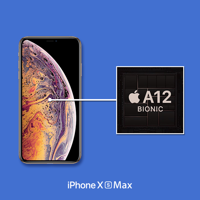 iPhone Xs Max มาพร้อม Apple A12 Bionic ผลิตบนสถาปัตยกรรมขนาด 7 นาโนเมตรเช่นกัน และมาพร้อม NPU เป็นครั้งแรก พร้อมกับมีระบบ Neural Engine ที่ช่วยในการเรียนรู้จากผู้ใช้งานอย่างชาญฉลาด รวมทั้งมีโปรเซสเซอร์ ISP ที่พัฒนาให้ดียิ่งขึ้นกว่าเดิม และสแกนใบหน้า Face ID สำหรับรุ่นนี้มาพร้อมกับแบตเตอรี่ความจุ 3,174 mAh ที่รองรับชาร์จไว Fast battery charging แบตเตอรี่เต็ม 50% ใน 30 นาที และรองรับชาร์จไร้สาย Qi wireless charging รวมทั้งรองรับมาตรฐานกันน้ำและฝุ่นระดับ IP68 เป็นครั้งแรก (จากเดิมรองรับมาตรฐาน IP67)