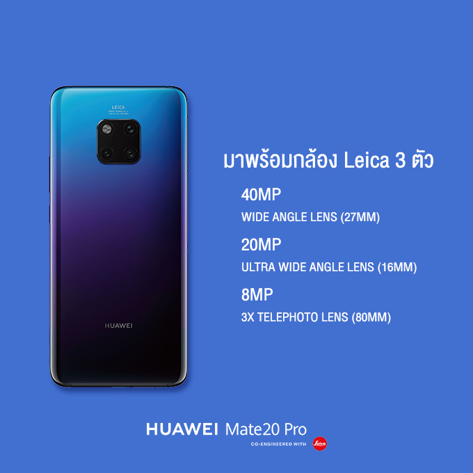 Huawei Mate 20 Pro มาพร้อมกล้อง Leica 3 ตัว โดยจะมีรายละเอียดดังนี้