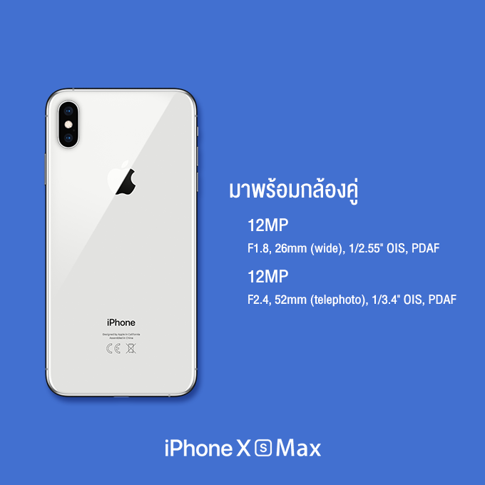 iPhone Xs Max มาพร้อมกล้องคู่โดยจะมีรายละเอียดดังนี้