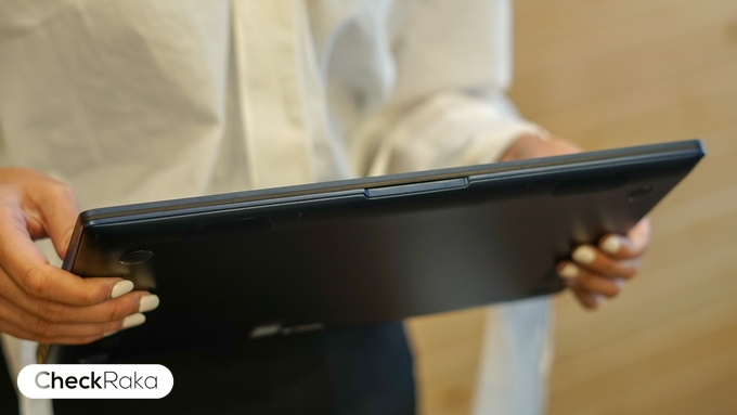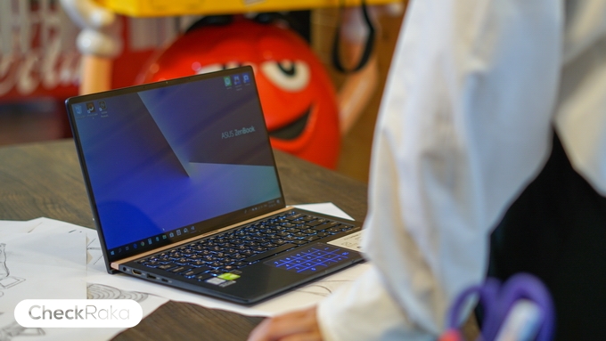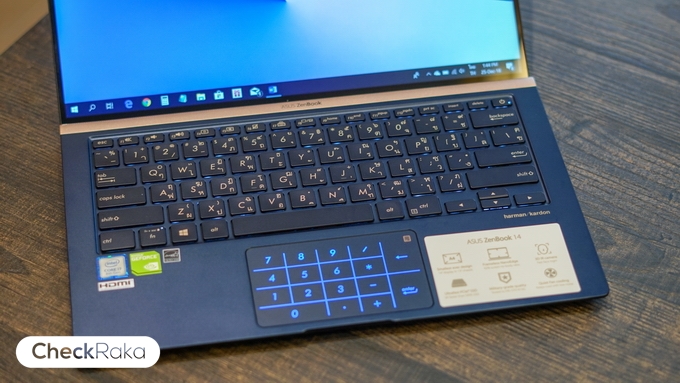 ลูกเล่นพิเศษอย่าง Touchpad ที่สามารถเปิดใช้งานเป็น Number Pad แบบระบบสัมผัส ซึ่งจะแสดงผลเป็นไฟ LED ขึ้นมา บอกเลยว่าเป็นฟีเจอร์ที่ทำให้ผมรู้สึกประทับใจมากๆ และกลไกบานพับ ErgoLift ที่ช่วยยกคีย์บอร์ดให้ลาดเอียงขึ้น เหมือนกับ ASUS ZenBook S แถมขอบหน้าจอยังบางเฉียบทั้ง 4 ด้าน (four-sided NanoEdge design) เป็นครั้งแรกของโลกอีกด้วย ที่สำคัญสวยงามขนาดนี้ ยังแข็งแกร่งมากด้วยนะครับ รองรับมาตรฐานทางการทหาร MIL-STD-810 G Military Standard มั่นใจได้ทุกการพกพาและใช้งาน